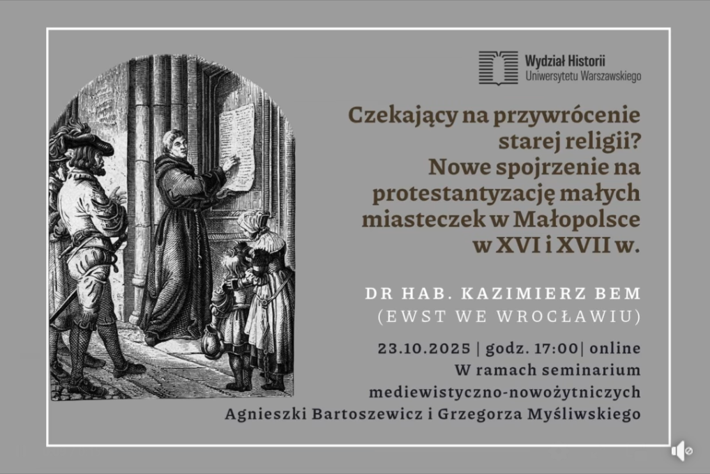 Seminarium mediewistyczno-nowożytnicze – spotkanie online 23 października