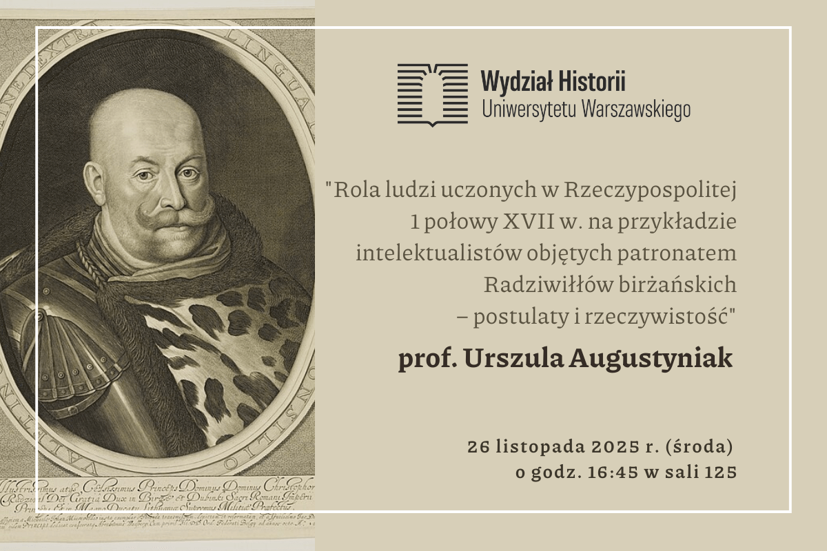 Serdecznie zapraszamy na zebranie Zakładu Historii Nowożytnej, które odbędzie się 26 listopada 2025 r. (środa) o godz. 16:45 w sali 125. Podczas spotkania prof. Urszula Augustyniak wygłosi referat pt.:„Rola ludzi uczonych w Rzeczypospolitej 1 połowy XVII w. na przykładzie intelektualistów...