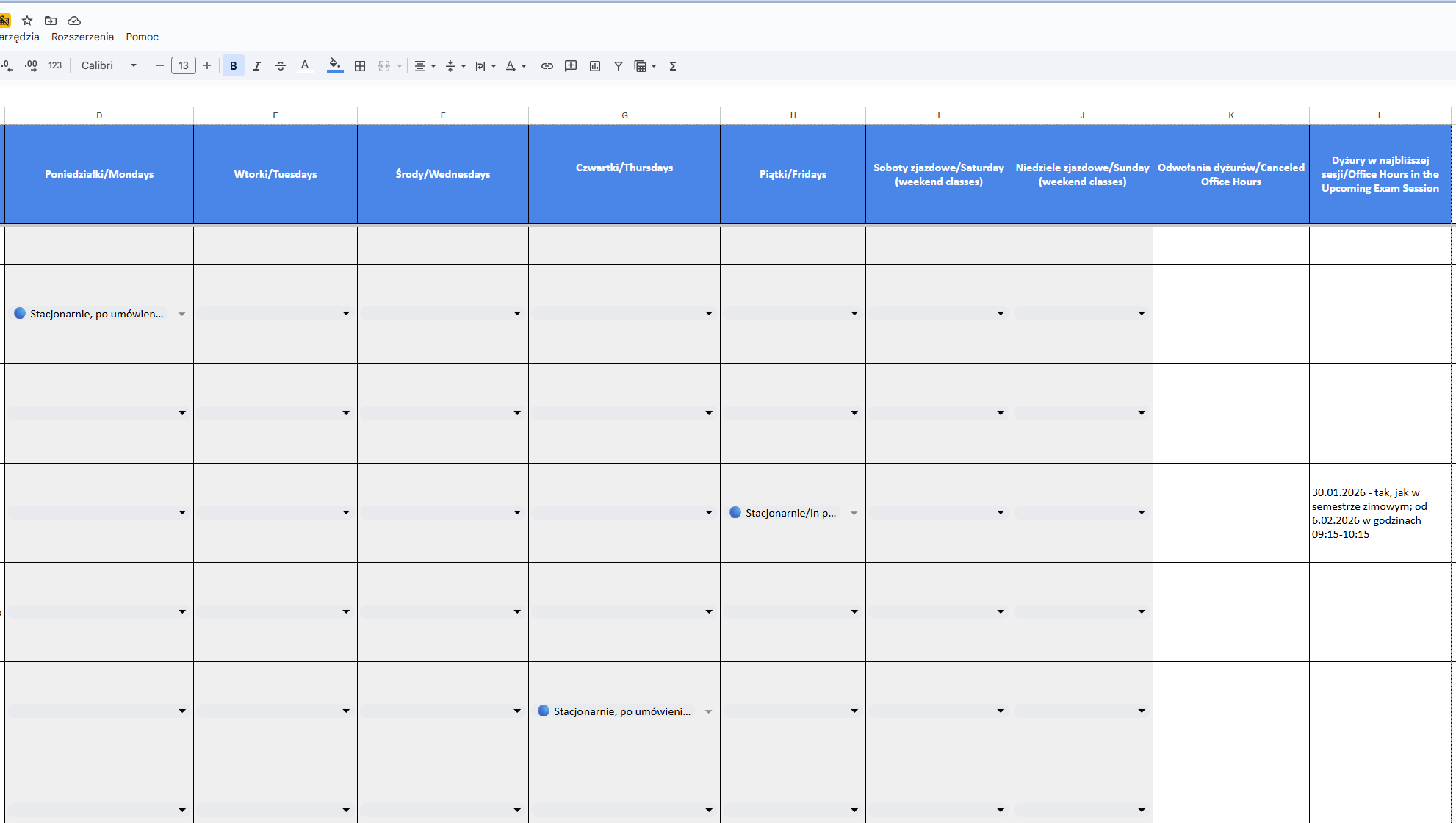 02.02.2026-22.02.2026 – możliwość zmiany grupy zajęciowej, rejestracja na wolne miejsca w grupach zajęciowych (do limitu 120 godzin zajęć), możliwość wyrejestrowania się z dotychczasowych grup zajęciowych