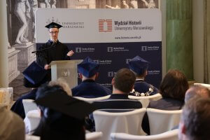 Najbardziej wzruszającą częścią były gratulacje i rozdanie listów gratulacyjnych oraz dyplomów ukończenia studiów, a także występ Chóru Wydziału Historii – ich wykonanie nadało chwili niezwykłej elegancji i wspólnego ducha. Momentem kulminacyjnym było wspólne zdjęcie pod bramą Uniwersytetu, gdzie dumnie pozowali absolwenci w togach i biretach, symbolicznie zamykając pewien etap i otwierając nowy rozdział swoich profesjonalnych historii.