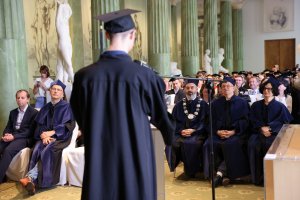 Uroczystość otworzył Dziekan prof. Łukasz Niesiołowski‑Spanò podkreślając wagę osiągnięć i trudów mijającego roku. Następnie prof. Piotr Majewski wygłosił “ostatni” dla niektórych absolwentów wykład.