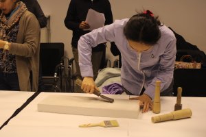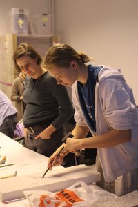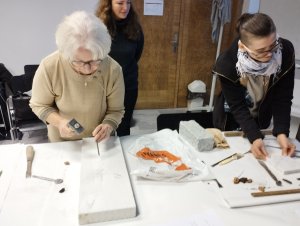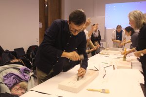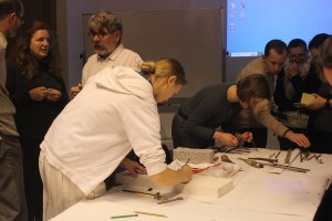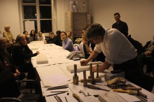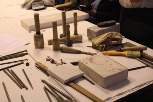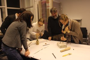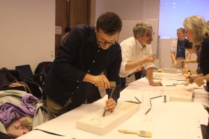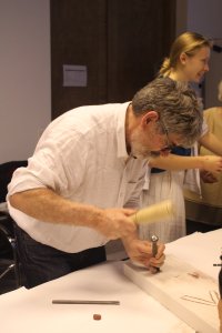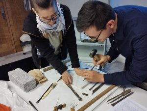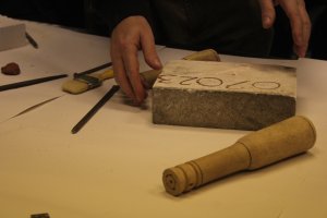 Warsztaty rozpoczęły się od krótkiego wykładu, w którym dr Thierry Grégor i dr Maria Villano pokazali antyczne techniki grawerunku, narzędzia i typy kamieni nadające się do takiej pracy. Następnie uczestnicy i uczestniczki warsztatów oddali się praktyce wycinania liter. Wydarzenie dostarczyło dużo wiedzy i radości wszystkim zebranym, bez względu na etap kariery naukowej.