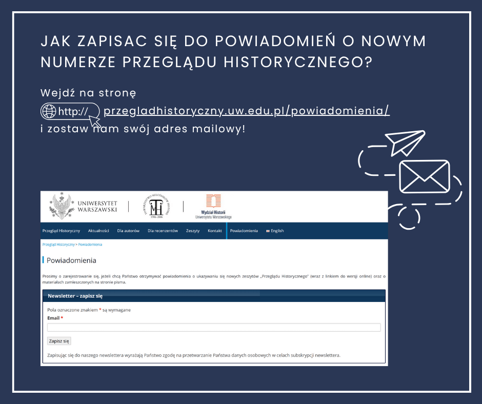 “Przegląd Historyczny” to jedno z najważniejszych i najstarszych czasopism historycznych w Polsce. Założony został w 1905 roku w Warszawie i początkowo był wydawany przez znane warszawskie przedsiębiorstwo wydawnicze Gebethnera i Wolffa. W skład pierwszego kolegium redakcyjnego weszli wybitni naukowcy: Ignacy Chrzanowski, Samuel Dickstein, Aleksander Jabłonowski, Stanisław Kętrzyński, Aleksander Kraushar, Franciszek Pułaski, Władysław Smoleński i Wacław Sobieski. W 1906 roku Przegląd stał się oficjalnym czasopismem założonego właśnie Towarzystwa Miłośników Historii. Pierwszym prezesem TMH wybrany został Aleksander Jabłonowski, po nim zaś do 1939 roku kolejno A. Kraushar (od 1912), i S. Kętrzyński (od 1933), wszyscy należący do grona twórców Przeglądu. Redaktorami Przeglądu przez ponad 100 lat jego istnienia byli: Jan Karol Korwin-Kochanowski (od 1905), Marceli Handelsman i Stanisław Kętrzyński (1917-1939), Janusz Woliński (1946-1952), Stefan Kieniewicz (1952-1992), Andrzej Wyrobisz (1993-2003), Włodzimierz Lengauer (2003-2012), Jerzy Kochanowski (2013-2018), Krzysztof Skwierczyński (2018–2021), Marek Janicki (2022–2024). Od poczatku 2025 r. redaktorem naczelnym jest Maciej Mycielski (2025- ). Od 1994 r. “Przegląd Historyczny” (ISSN 0033-2186) jest czasopismem wydawanym wspólnie przez Towarzystwo Miłośników Historii oraz Wydział Historii). Od 2025 r. wydawcą “Przeglądu Historycznego” są Wydawnictwa Uniwersytetu Warszawskiego.